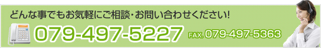 お問い合わせは、お電話(079-497-5227)にてお問い合わせいただくか、下記の入力画面に必要事項をご記入いただき、入力画面の最後にある「送信する」ボタンよりお問い合わせください。